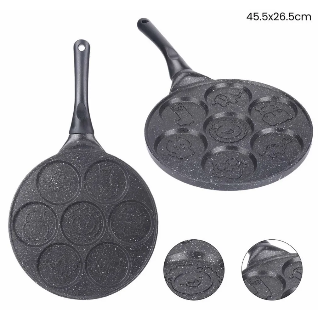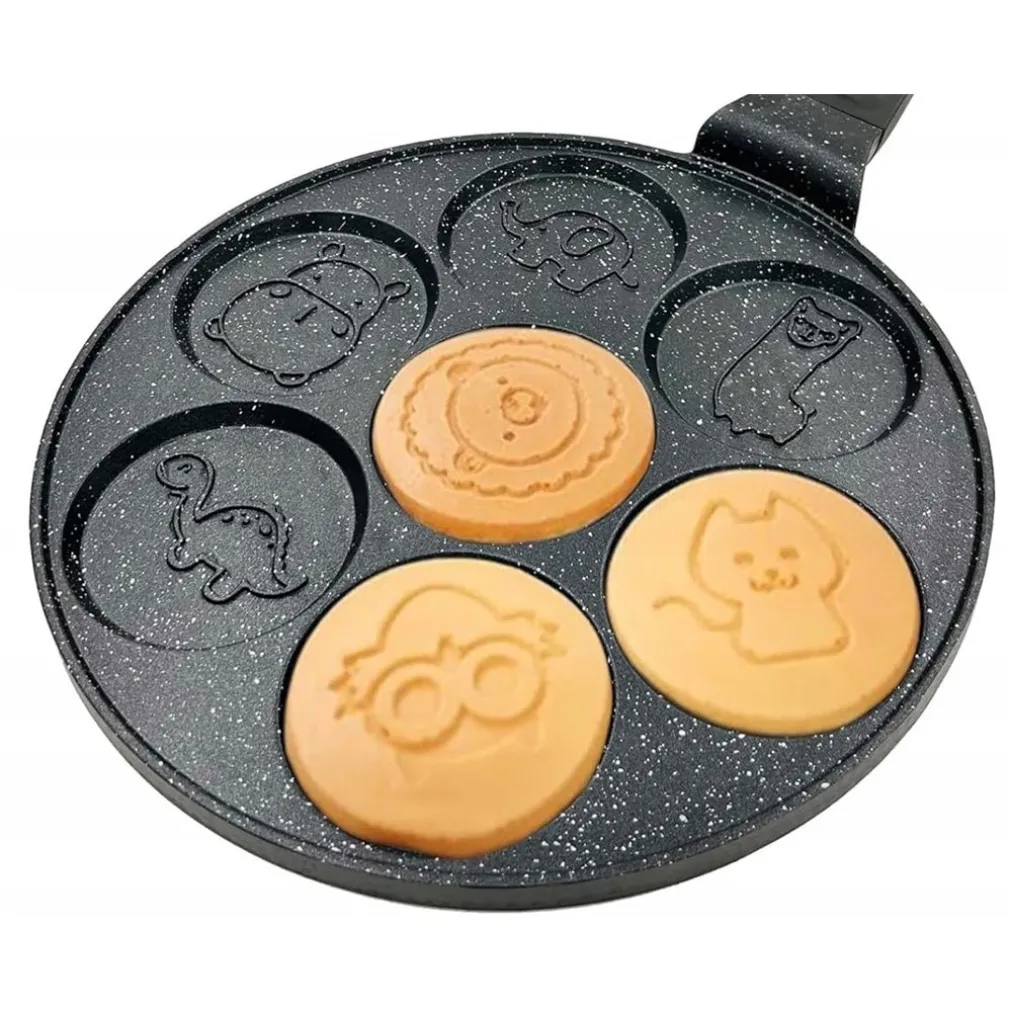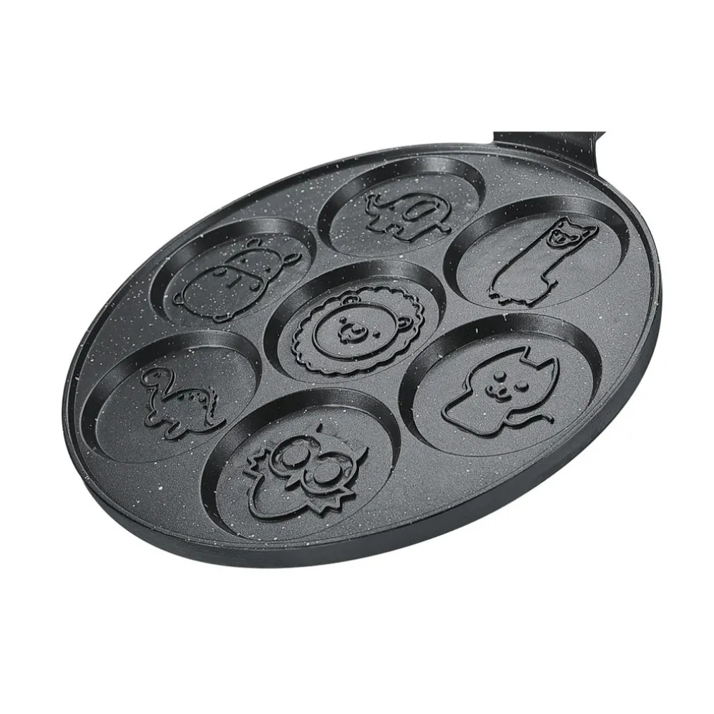 Padella Antiaderente per Pancake, Uova, Cialde con 7 Stampi in Forme di Animali Rotonde – 624391