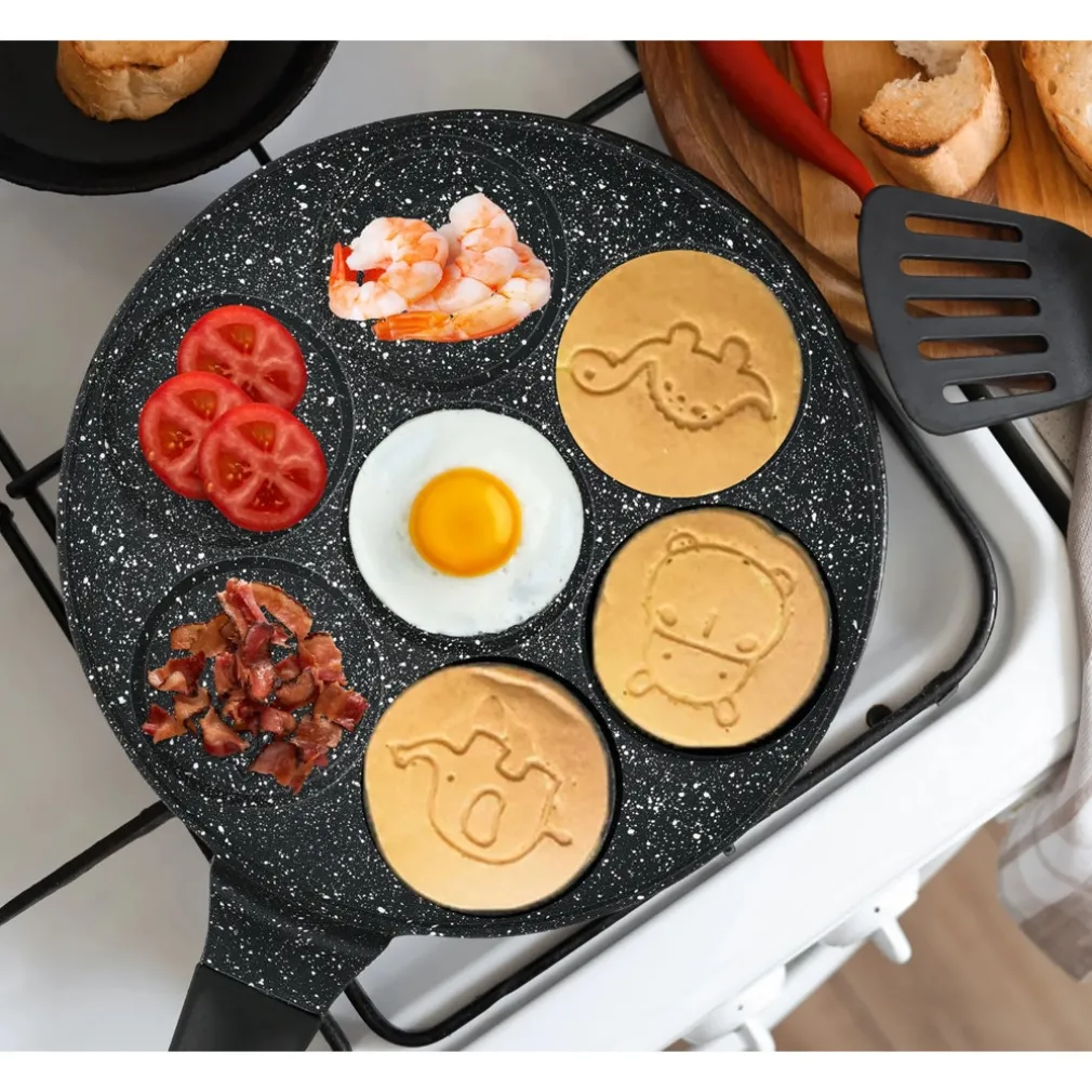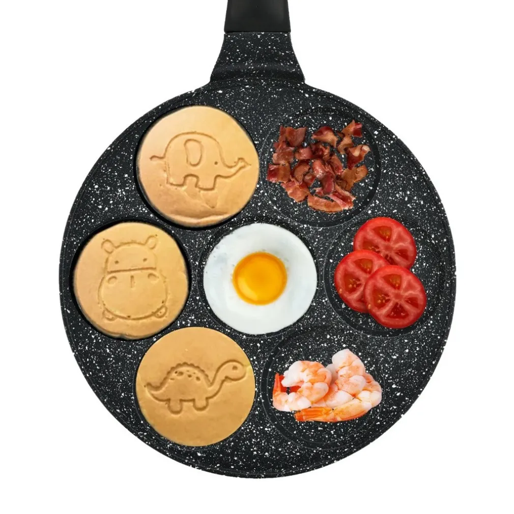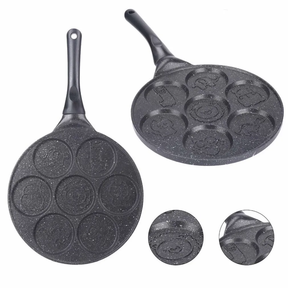 Padella Antiaderente per Pancake, Uova, Cialde con 7 Stampi in Forme di Animali Rotonde – 624391