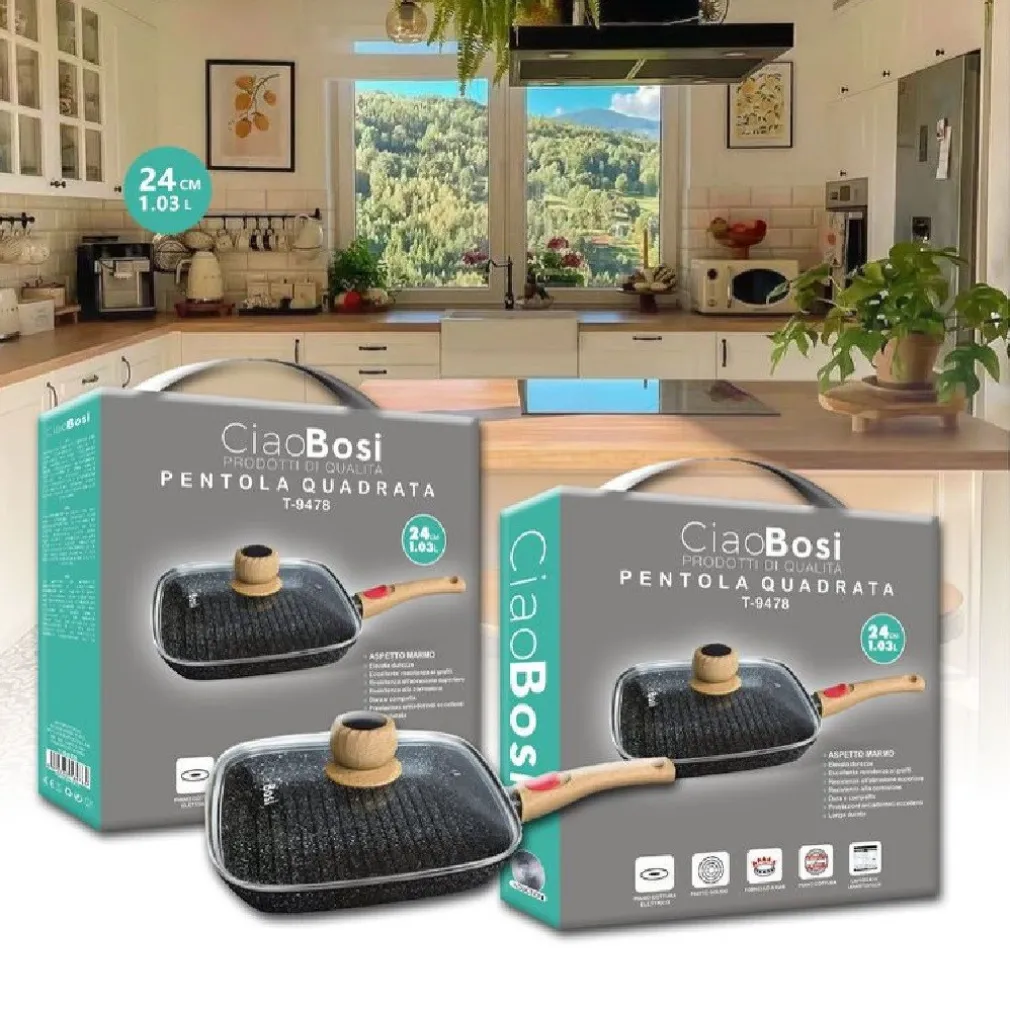 - Dimensioni Ottimali: La padella pentola quadrata misura 24cm, offrendo la dimensione perfetta per cucinare una varietà di piatti.