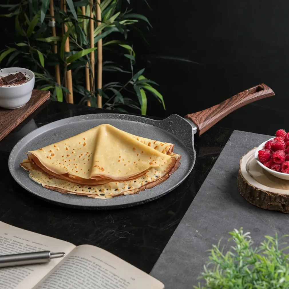 La padella è progettata principalmente per crêpe, ma è perfetta anche per preparare omelette, uova fritte, piadine e pancakes. La superficie ampia e antiaderente la rende estremamente versatile.