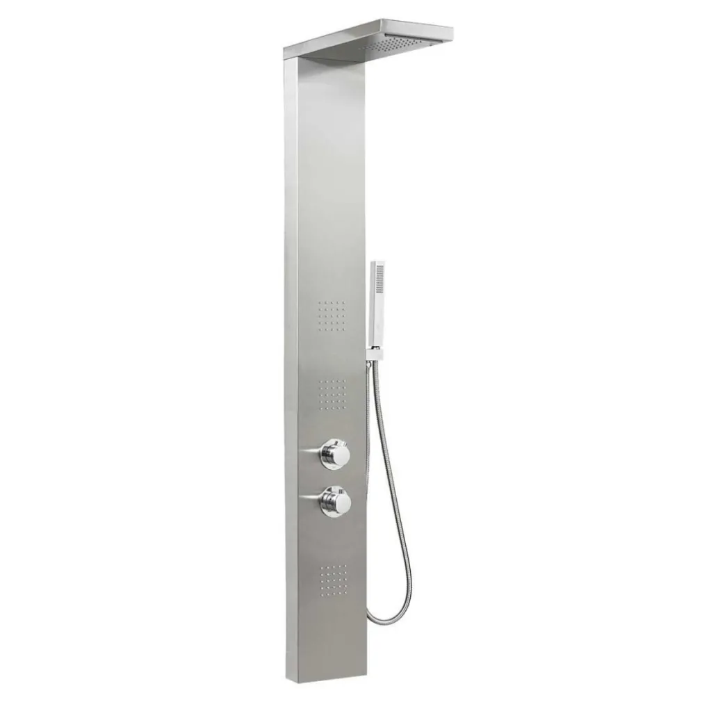 - Il pannello doccia ha quattro funzioni: pioggia, cascata, idromassaggio e doccia a telefono che possono essere facilmente selezionate tramite un pomello. La temperatura dell’acqua è regolabile grazie alla manopola del termostato.
