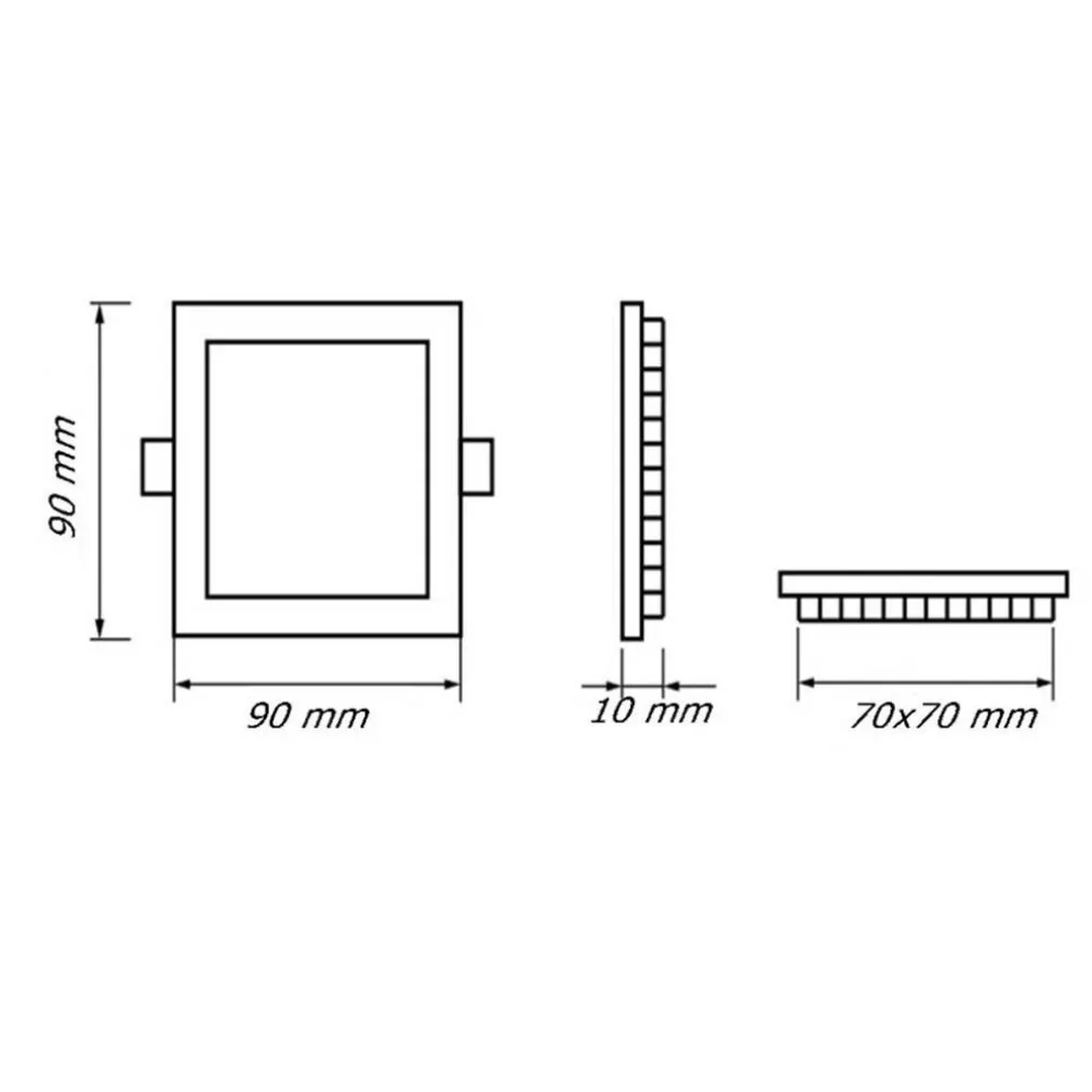 - Dimensioni esterne: 90×90 mm