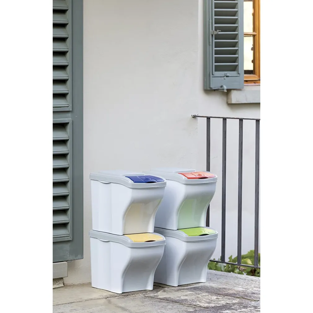 Pattumiera componibile per una raccolta differenziata ordinata e per essere liberi di deciderne la posizione,perche sono separabili e indipendenti l’uno dall’altro facilmente distinguibili dal colore del coperchioPermette l’ utilizzo di svariate forme di sacchetti. Capacità interna: 20 lt. cadauno.Dimensioni: h 31,5x28x40cm.