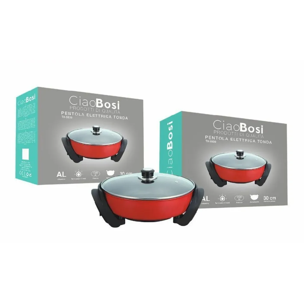 Questa padella elettrica, oltre ad essere un strumendo ideale per la cucina è anche un’oggetto dal design moderno ed elegante. Tieni sotto controllo la temperatura e cuoci al meglio il tuo cibo! La casseruola elettrica può essere utilizzata per molti scopi diversi ed è facile da usare. La pentola è molto capiente e ha un diametro di 30 centimetri Il termostato consente di regolare facilmente la temperatura desiderata. La casseruola elettrica si riscalda rapidamente grazie alla potenza di 1500 w.