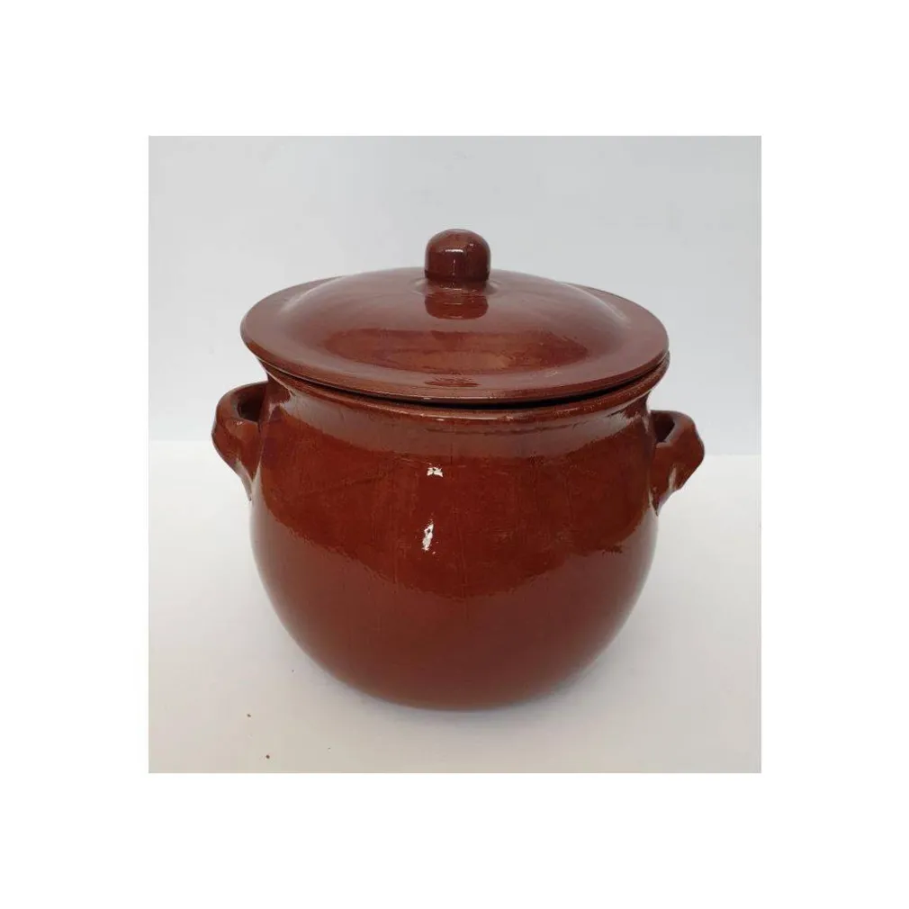 - 1 x PENTOLA TEGAME IN TERRACOTTA BOMBATA CON MANICI E COPERCHIO DA FORNO COTTURA 22Cm