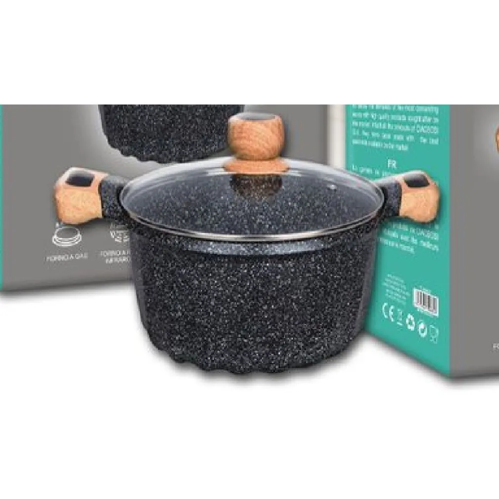 Pentola Tegame Per Zuppa Rivestito In Granito Con Coperchio Vetro 24cm T-9482