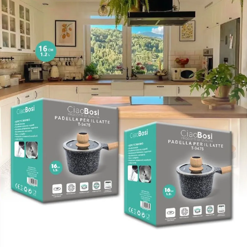 Pentolino Padella Per Il Latte Pentola Bollilatte Con Manico E Coperchio 16cm 1,2Lt Per Piano Cottura T-9475