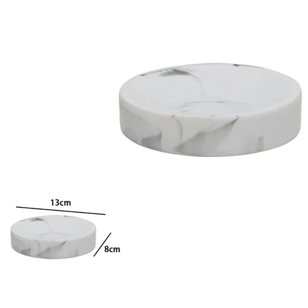 Arricchisci il tuo spazio bagno con il piattino porta sapone, un accessorio che combina funzionalità ed estetica in modo impeccabile. Il suo design circolare ed elegante, unito alla raffinata finitura effetto marmo bianco, lo rende perfetto per qualsiasi stile di arredamento, dal classico al moderno.