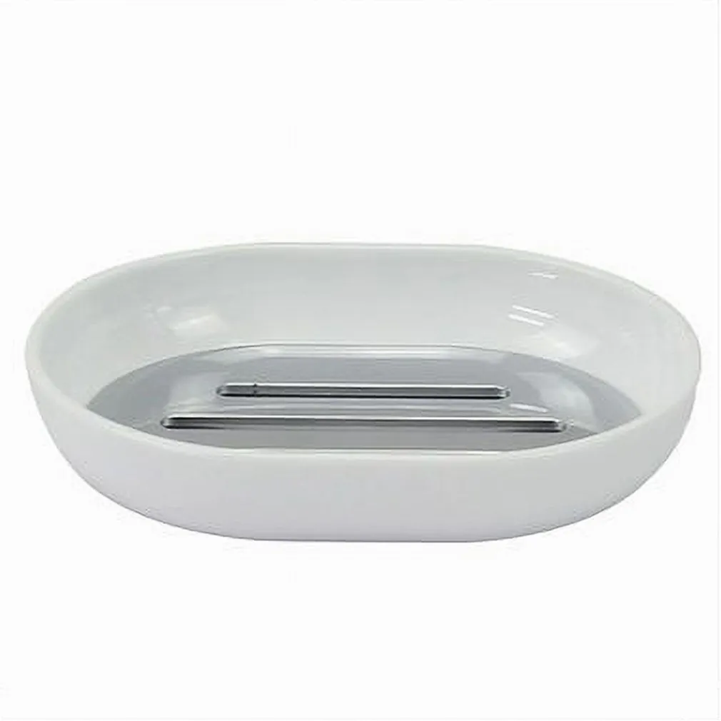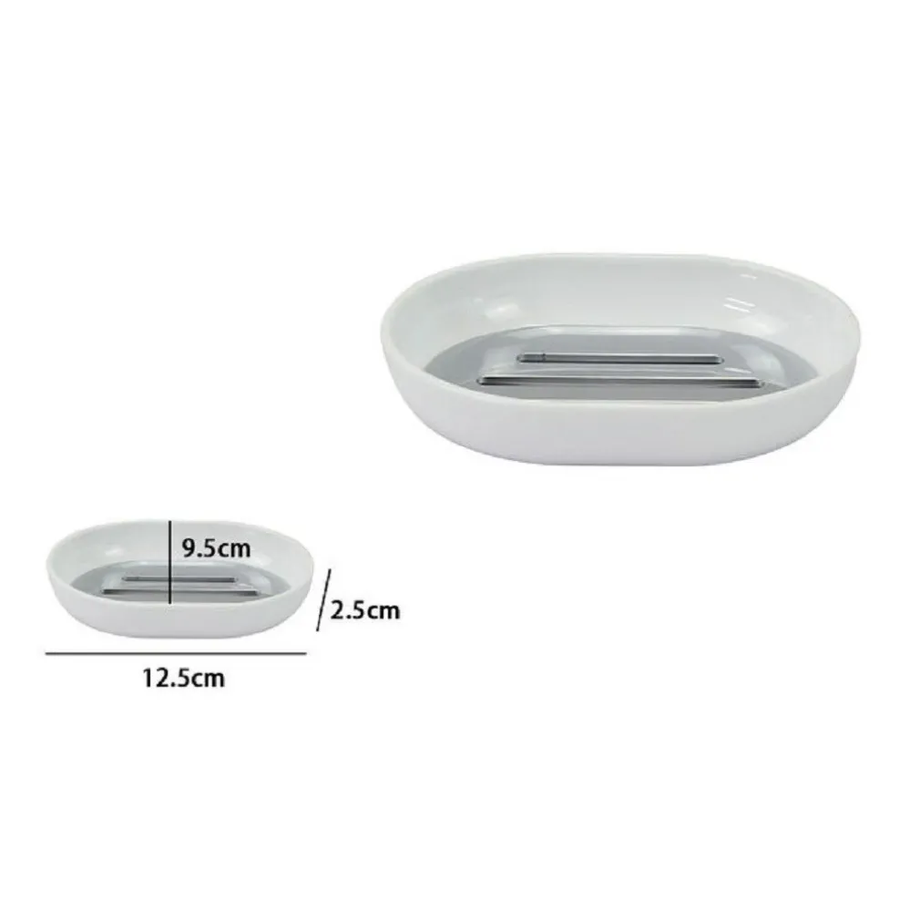 Piattino Porta Sapone Saponetta Bianco Silver – Accessori Bagno 12.5 x 9.5cm (Codice: 79865)