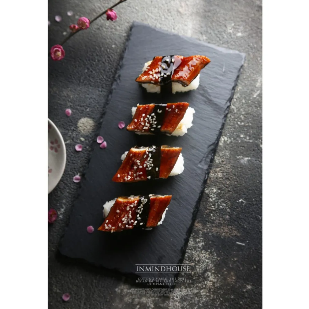 PIATTO IN PIETRA ARDESIA nero RETTANGOLARE 20×10 CM PORTATA PER CIBI CALDI FREDDI APERITIVI FINGER FOOD SECONDI SUSHI