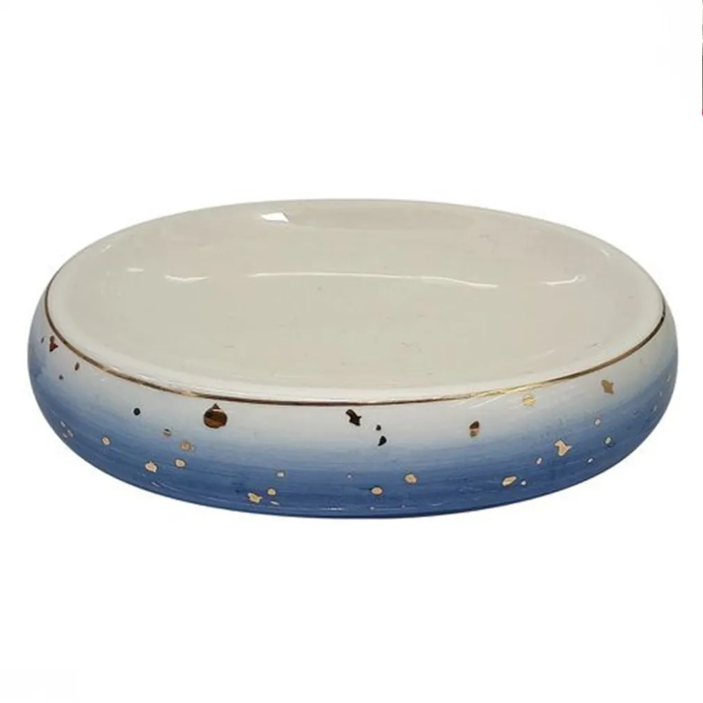 Piatto Piattino Porta Sapone Saponetta Bagno in Ceramica Bianco Blu Arredo 79968
