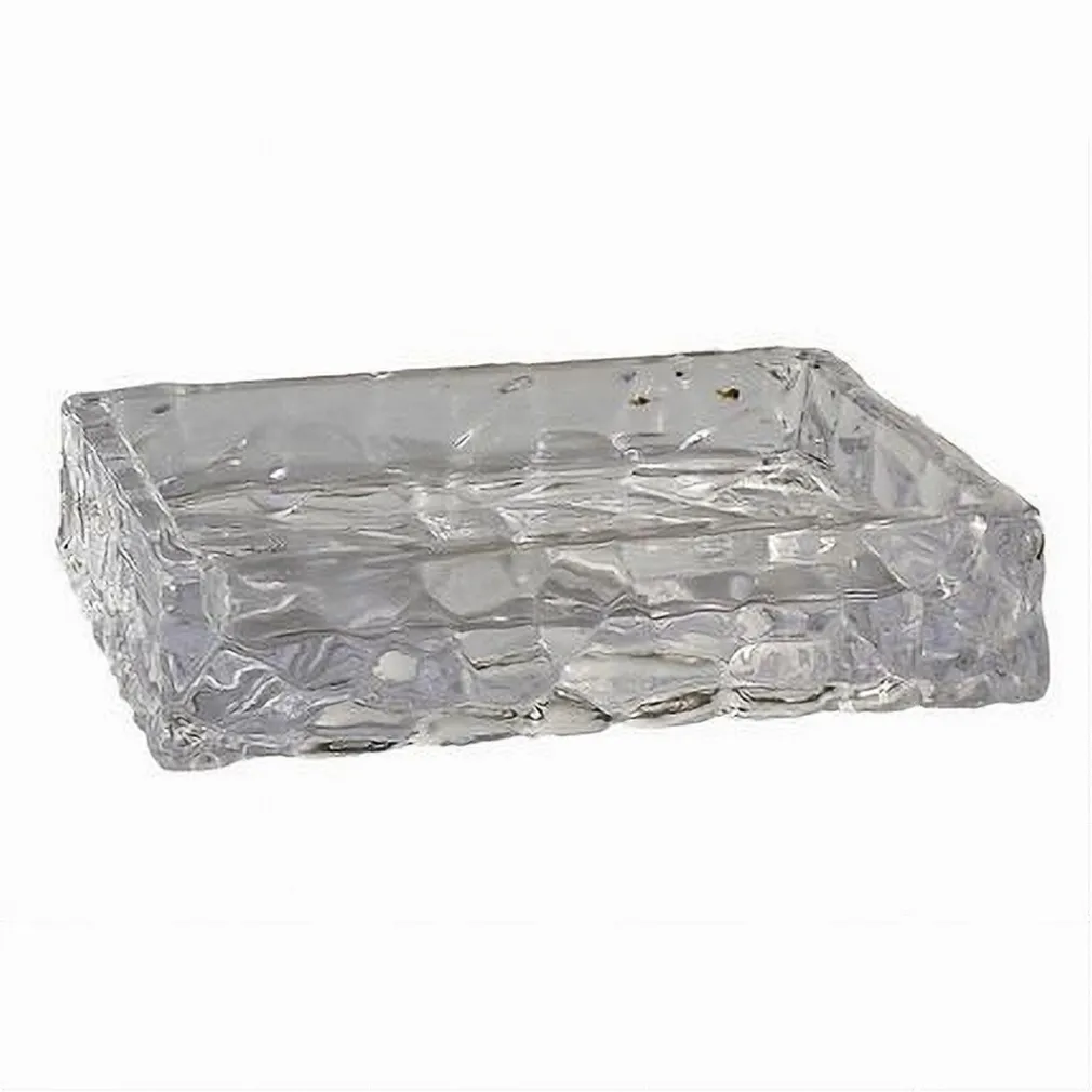 PIATTO PORTA SAPONE SAPONETTA VETRO TRASPERENTE EFFETTO SASSI ARREDO BAGNO 10364
