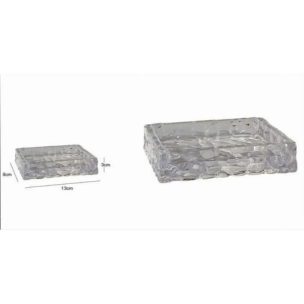 Il piattino porta saponetta è un accessorio da bagno realizzato in vetro trasparente con un elegante effetto sassi. È progettato per mantenere la saponetta asciutta e pulita, aggiungendo un tocco di stile al tuo bagno.