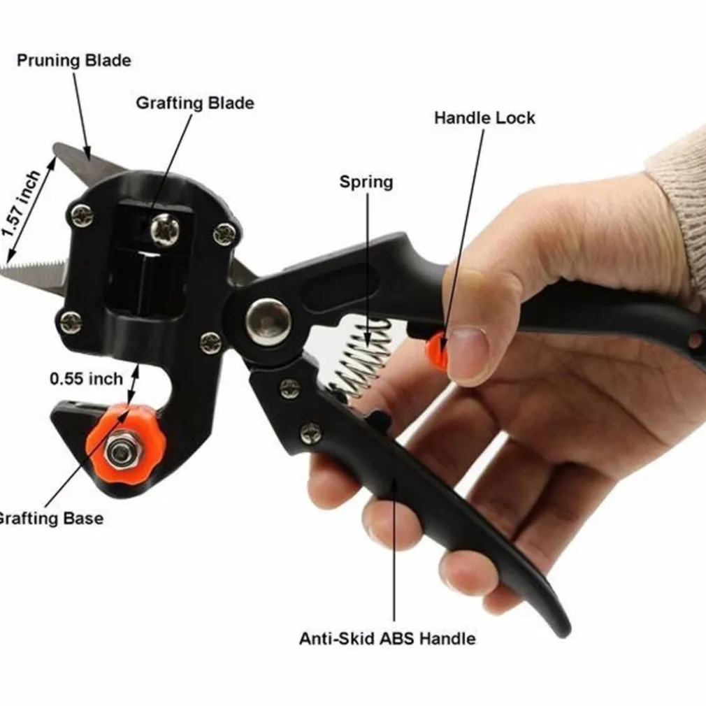 Innestatrice professionale universale adatta per creare innesti su qualsiasi tipo di pianta o fiori.Dotata di molla di ritorno con sistema di bloccaggio e tre lame in acciaio temperato di ricambio che permettono di effettuare tagli a incastro(forma a spillo), gemma (forma a ellisse), omega (forma quadrata). Tutti i pezzi dell’innestatrice sono intercambiabili ed è costituita in plastica dura e resistente. Con questa innestatrice l’innesto diventa un gioco facile e divertente. È sufficiente “pinzare” due rami per avere pronti in un attimo “nesto e portainnesto”. Robusta ma leggera l’innestatrice è provvista di 3 tipi diversi di lame per effettuare il classico innesto a “V”, quello ad “omega” e quello a “gemma”.