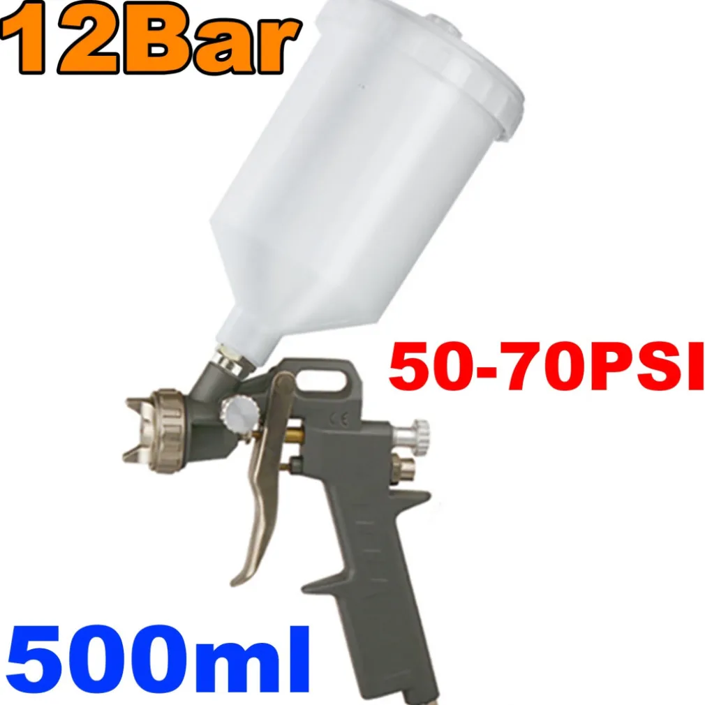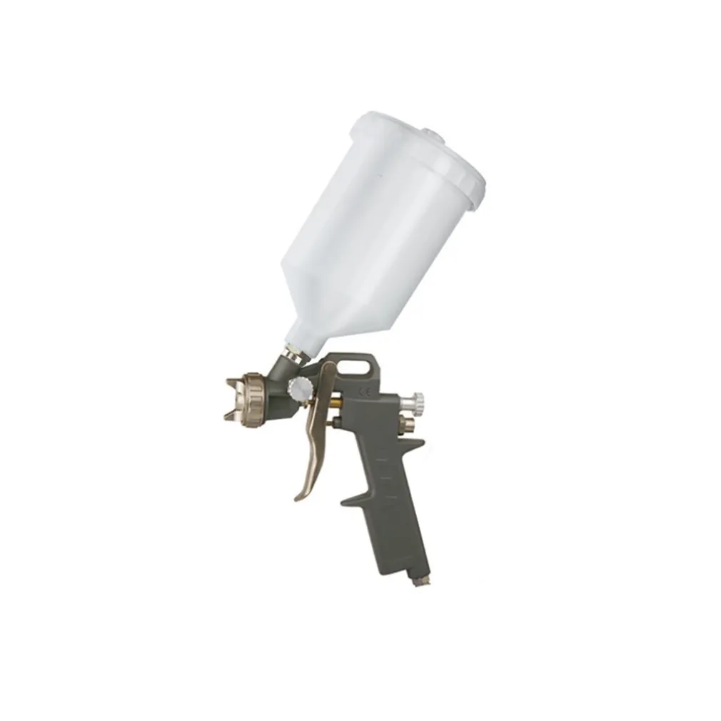 Aerografo a gravità con sistema HVLP (alto volume in bassa pressione) adatto per lavori di carrozzeria o di falegnameria dove è richiesto un alto grado di qualità. E’ munito di ghiera in ottone cromato, ugello ed ago autocompensanti realizzati in acciaio inox e serbatoio in plastica da 500ml. Possiede tre regolazioni separate per la pressione dell’aria in ingresso, per la quantità di vernice e per l’apertura del ventaglio. Fornito con chiavi di manutenzione, scovolino attacco a vite da 1/4″, attacco per tubo da 8mm e spazzolino.