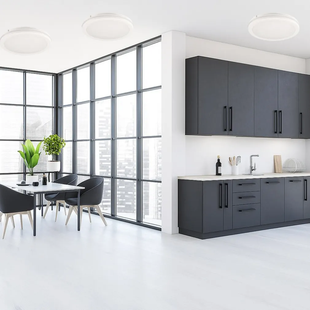 Disponibile in due colorazioni eleganti, Bianco o Nero, la plafoniera LED si integra perfettamente in ogni contesto: dal salotto all’ufficio, dagli spazi residenziali a quelli professionali.