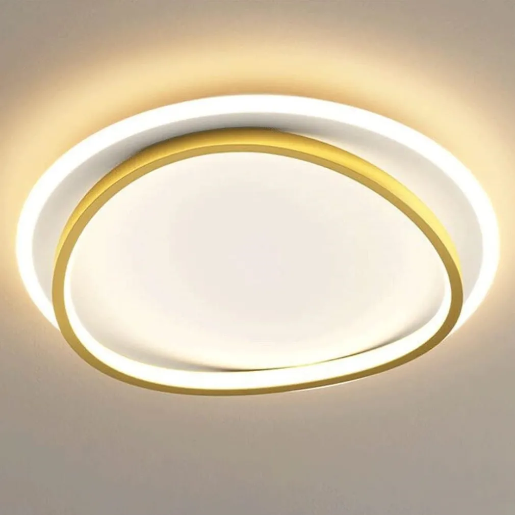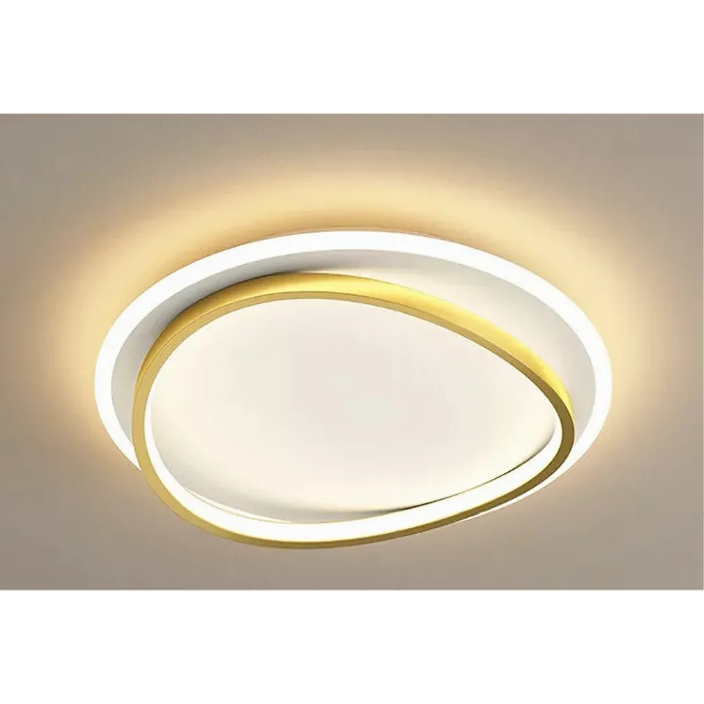 Il design moderno con i due cerchi sovrapposti in bianco e oro crea un effetto tridimensionale elegante. Inoltre, la luce naturale e il flusso luminoso di 3996 lumen garantiscono un’illuminazione uniforme e accogliente.