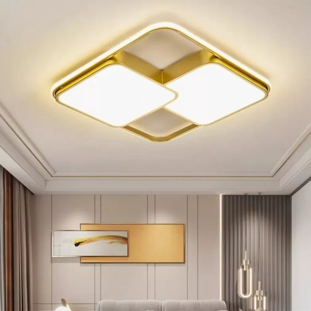 Il design unico con tre quadrati sovrapposti e finitura in oro offre un effetto visivo moderno e sofisticato. Perfetta per chi desidera un’illuminazione elegante senza sacrificare la funzionalità.