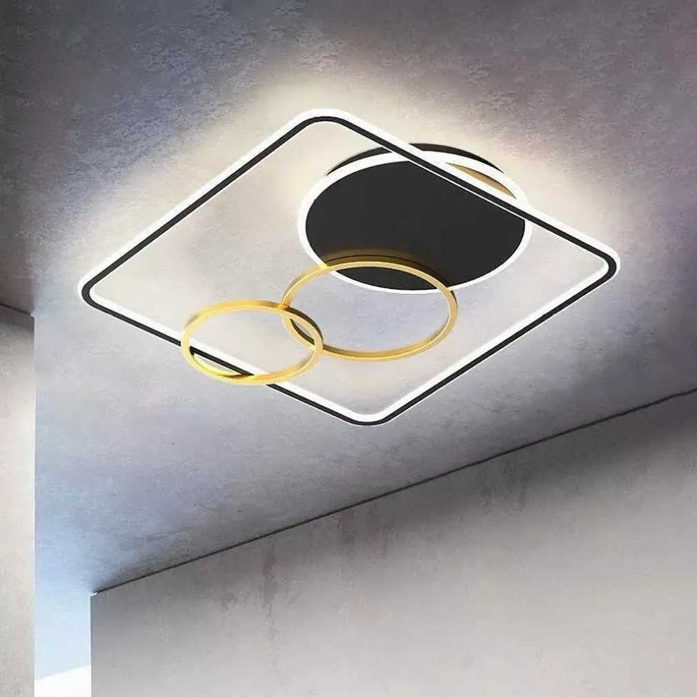 PLAFONIERA LED 55W QUADRATO CON CERCHI NERO ORO – DESIGN MODERNO E VERSATILITÀ PER LA TUA ILLUMINAZIONE