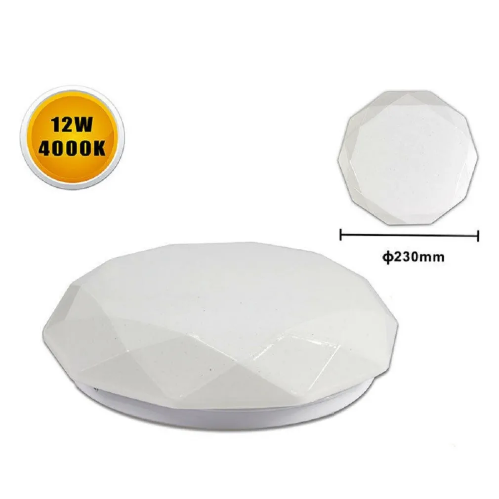 Plafoniera da soffitto lavorata con puntini trasparenti a basso consumo di soli 12 watt che dona una forte illuminazione grazie ai suoi 24 led, con colorazione a luce calda 3000k, naturale 4000k e bianca fredda 6500k. Realizzata con base in lamiera e scocca in plastica, ideale per case, uffici, bar e negozi.