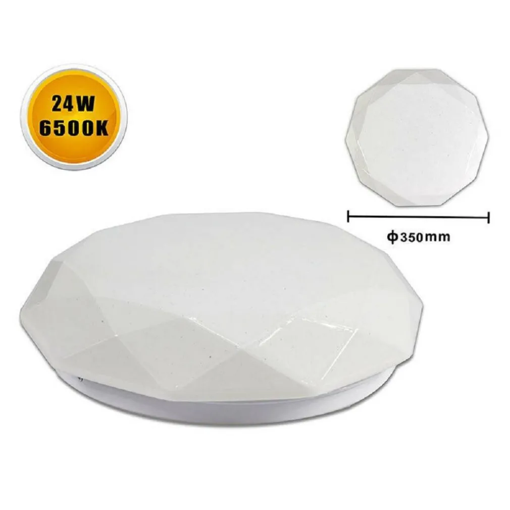 Plafoniera da soffitto lavorata con puntini trasparenti a basso consumo di soli 24 watt che dona una forte illuminazione grazie ai suoi 48 led, con colorazione a luce calda 3000k, naturale 4000k e fredda 6500k. Realizzata con base in lamiera e scocca in plastica, ideale per case, uffici, bar e negozi.