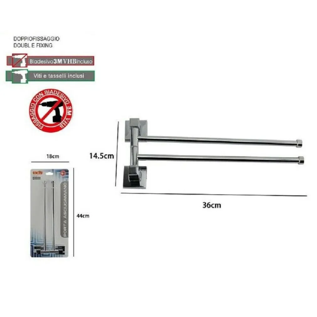 Porta Asciugamani 2 Bracci A Parete Bagno Acciaio Cromato di alta qualità per aggiungere stile e funzionalità al tuo bagno. Con una misura di 36×14.5cm, questo porta asciugamani offre un design elegante e contemporaneo che si adatta perfettamente a qualsiasi ambiente.