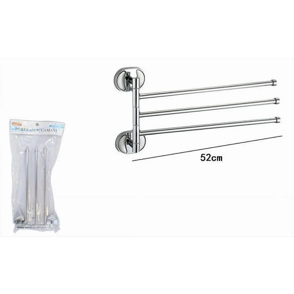 Porta Asciugamani 3 Bracci Fissaggio a Parete Bagno Acciaio Cromato OVAL 52003