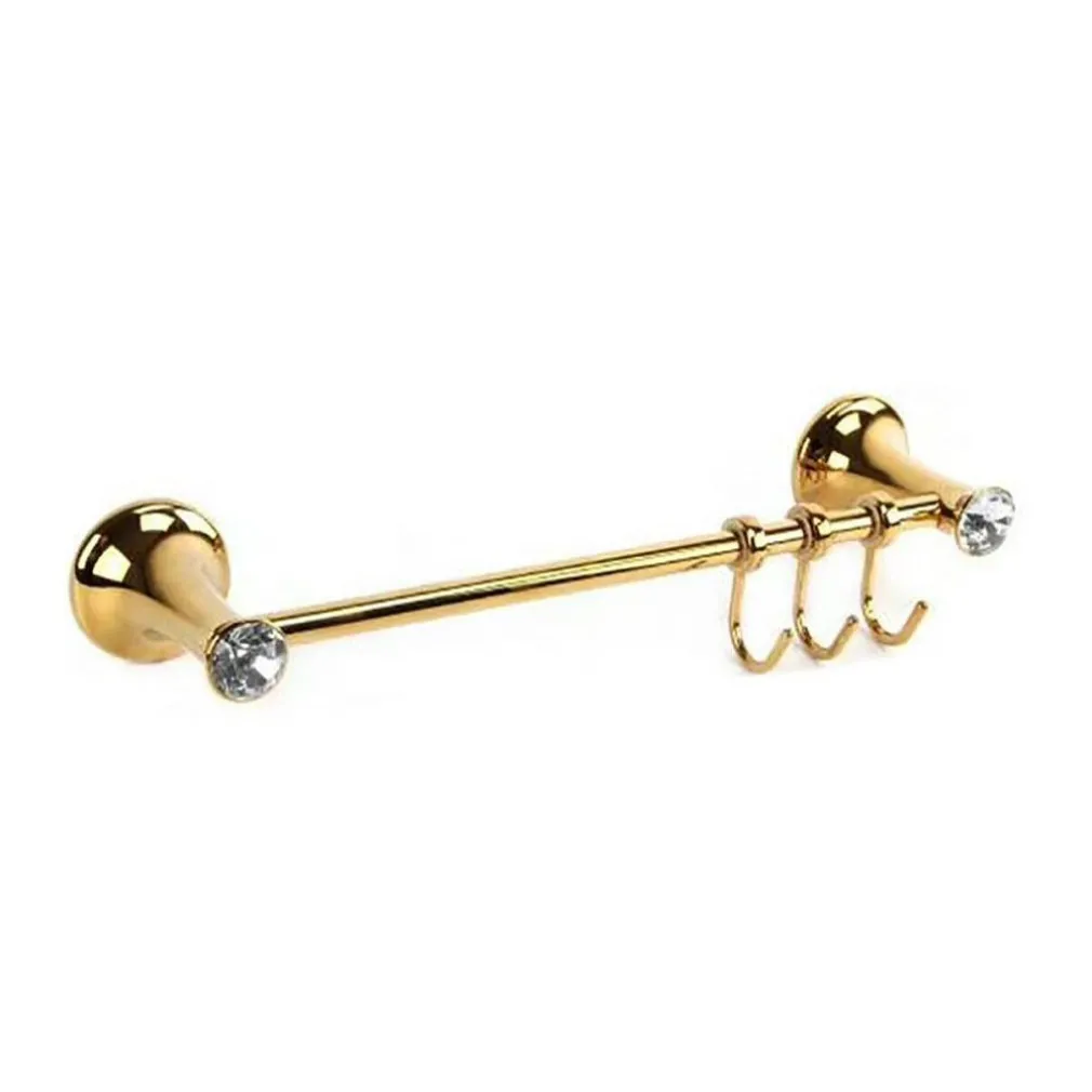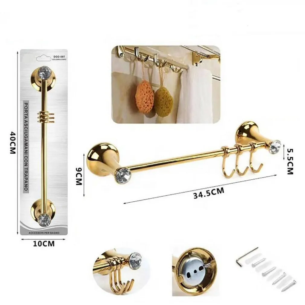 PORTA ASCIUGAMANI 3 GANCI SUPPORTO ARREDO BAGNO CASA CUCINA DORATO ORO DGO-097
