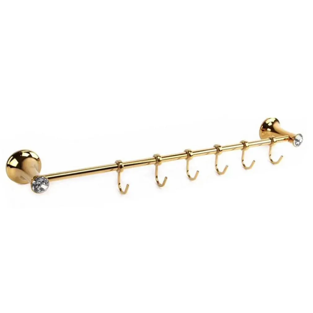 PORTA ASCIUGAMANI 6 GANCI SUPPORTO ARREDO BAGNO CASA CUCINA DORATO ORO DGO-100