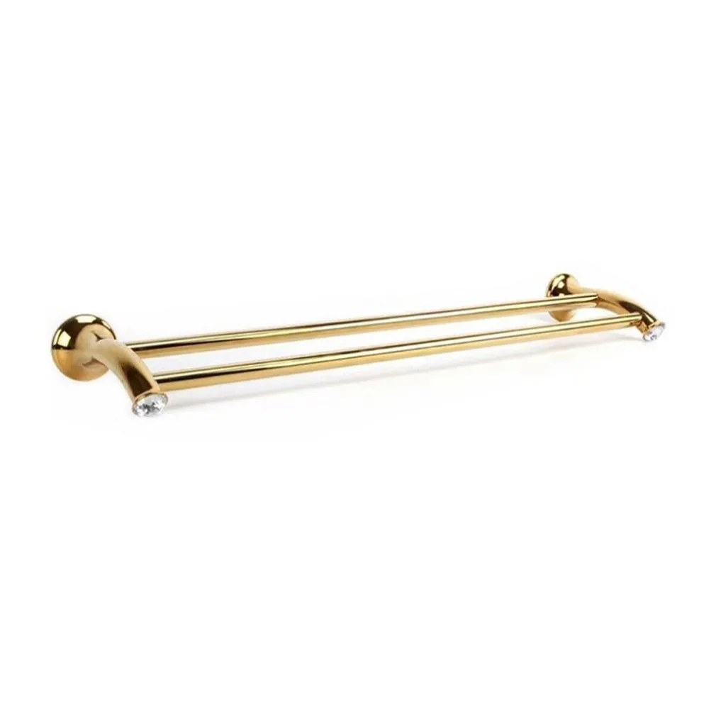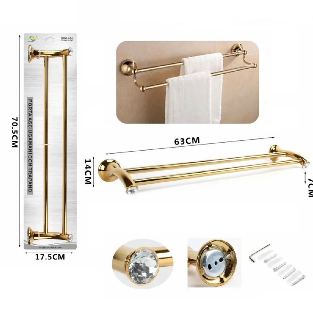 PORTA ASCIUGAMANI A 2 ASTE SUPPORTO ASTA BAGNO DA MURO CASA DORATO ORO DGO-096