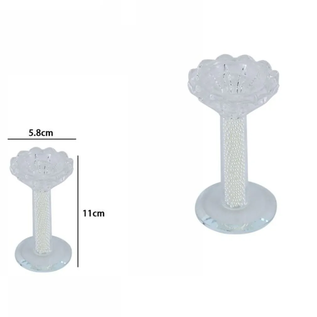 Elegantissimo candeliere in vetro cristallo, impreziosito da perle. Ideale come decorazione per una tavola elegante, per un salone moderno. Dona stile alla tua casa con il porta candele con perle. Ottimo anche come idea regalo e come bomboniera per stupire in ogni occasione importante.