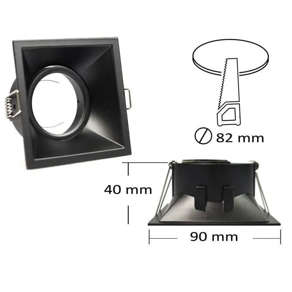 - La confezione include il supporto faretto orientabile quadrato GU10 e il sistema di fissaggio a molle.