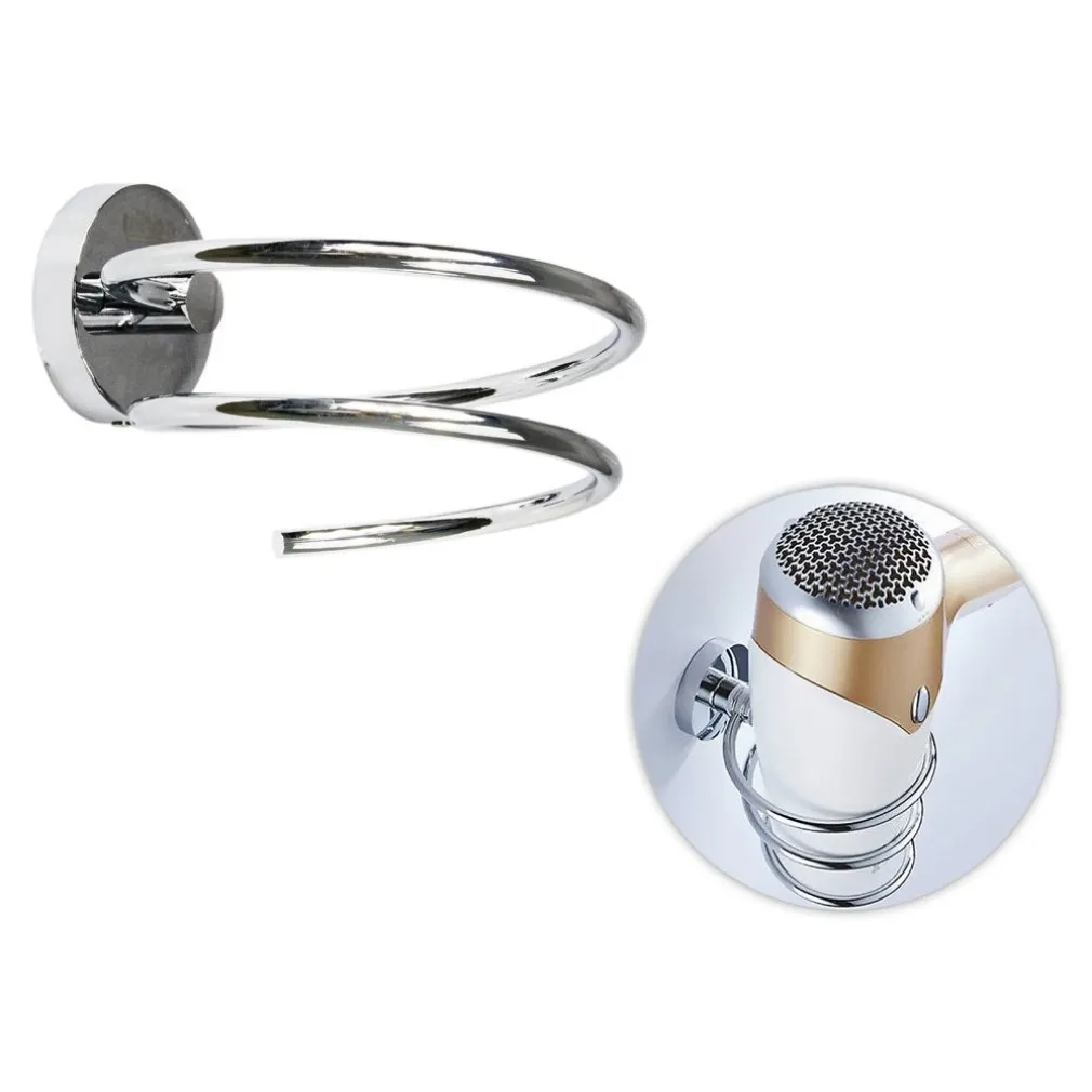 Porta asciugacapelli a muro in acciaio cromato da installare o con le viti incluse nella confezione oppure con un mastice (colla) dalla presa ultraresistente. La forma ad aspirale lo rende universale e al contempo indispensabile per avere il vostro phon sempre in ordine e senza occupare spazi in cassetti o mobiletti del bagno.