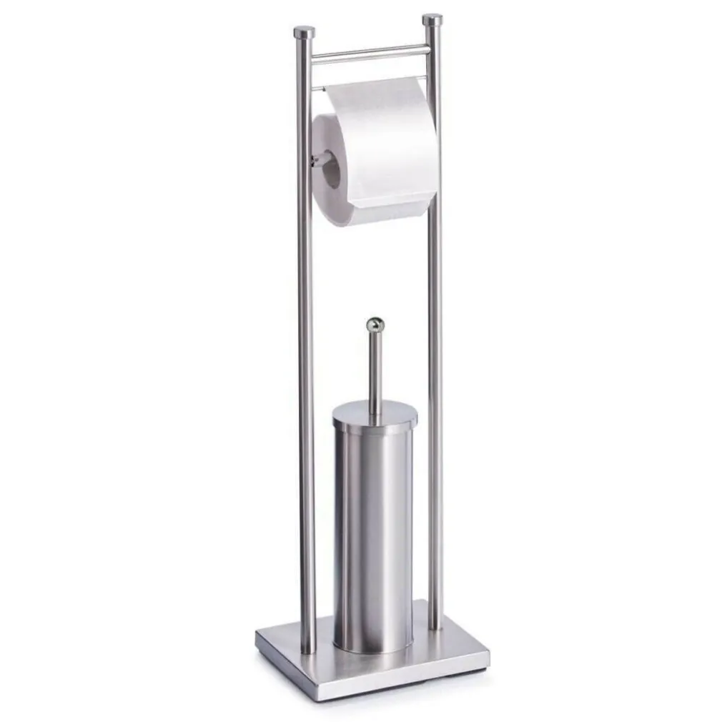 La confezione include una piantana porta rotolo, uno scopino e un porta scopino in acciaio.
