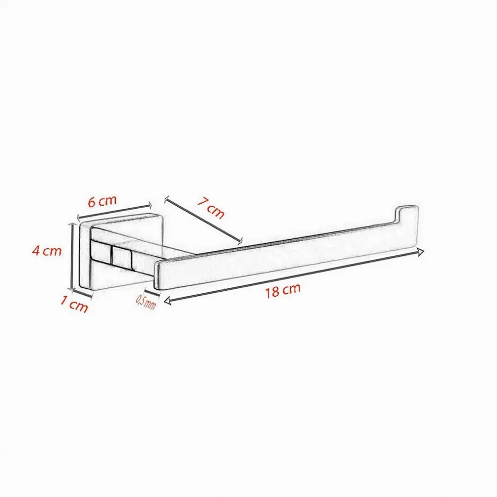 Quali sono le dimensioni del porta rotolo? Il porta rotolo misura 6x4x18 cm, rendendolo adatto per bagni di tutte le dimensioni.