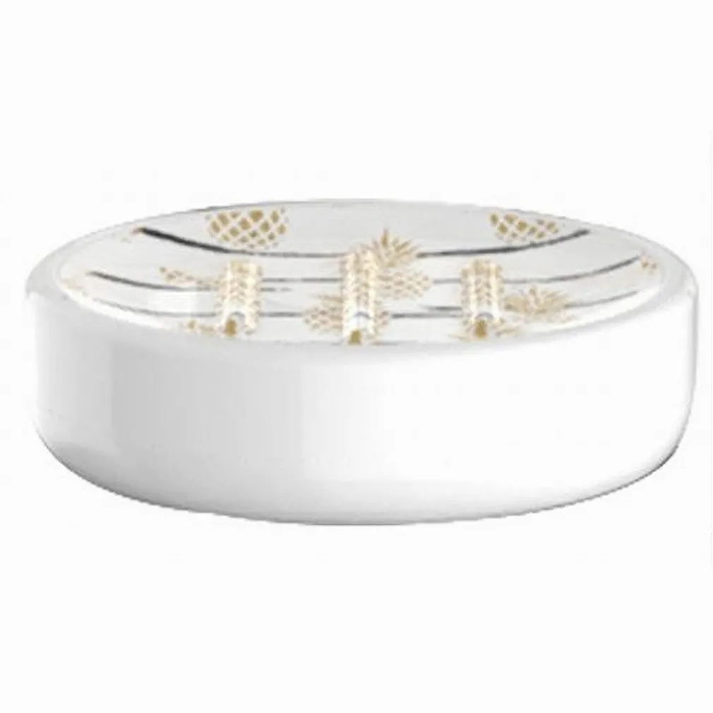 Porta Sapone Saponetta Accessorio Arredo Bagno Bianco con Ananas 11x8x3cm 69754
