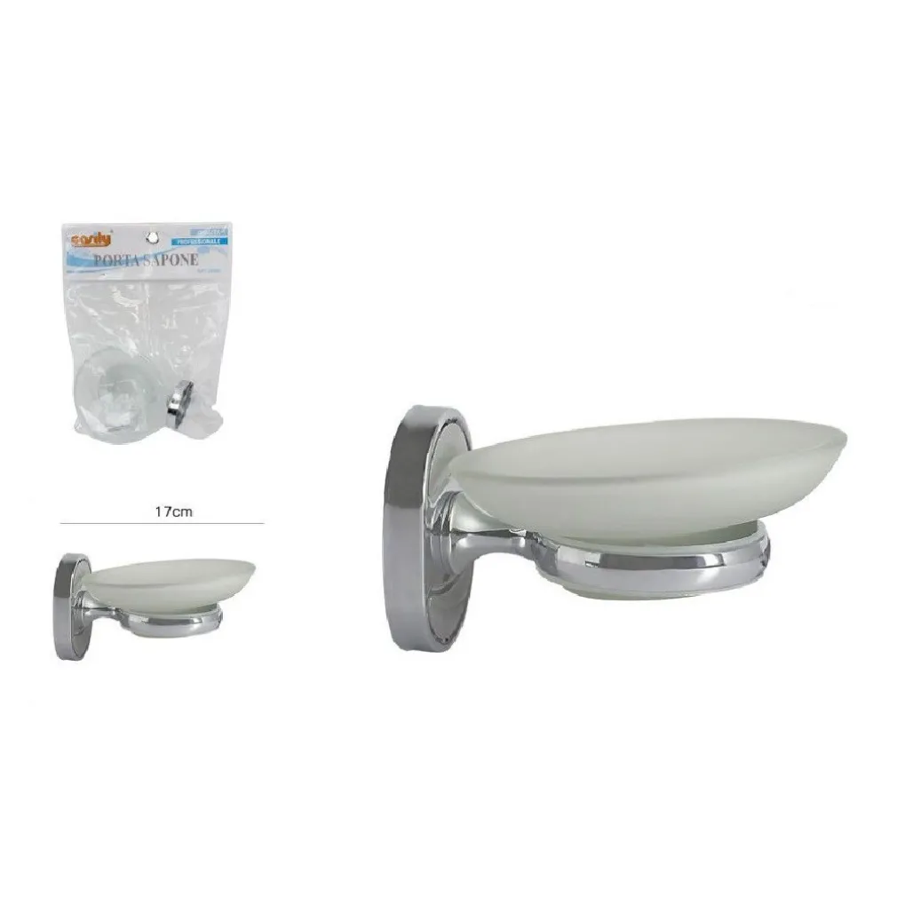 Porta Sapone Saponetta con Piattino Vetro Satinato Parete Bagno Ovale 52009