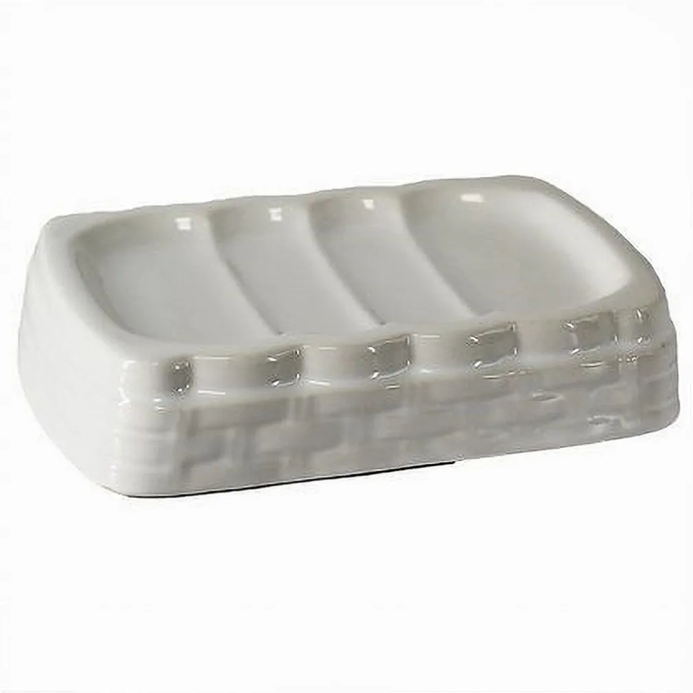 PORTA SAPONE SAPONETTA STILE VIMINI RATTAN BIANCO IN CERAMICA ARREDO BAGNO 10349