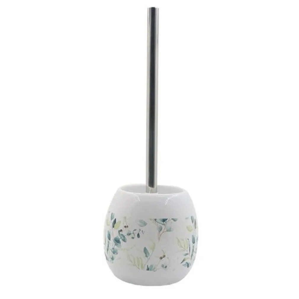 Porta Scopino Bianco Decorato Fiori Foglie Portascopino Accessori Bagno 87052