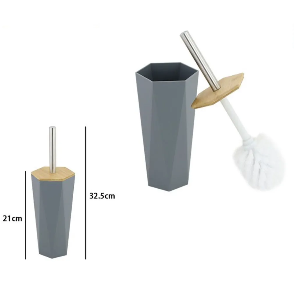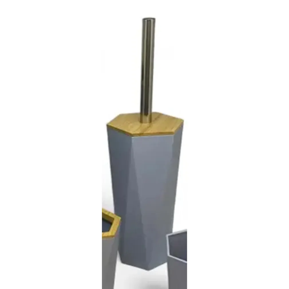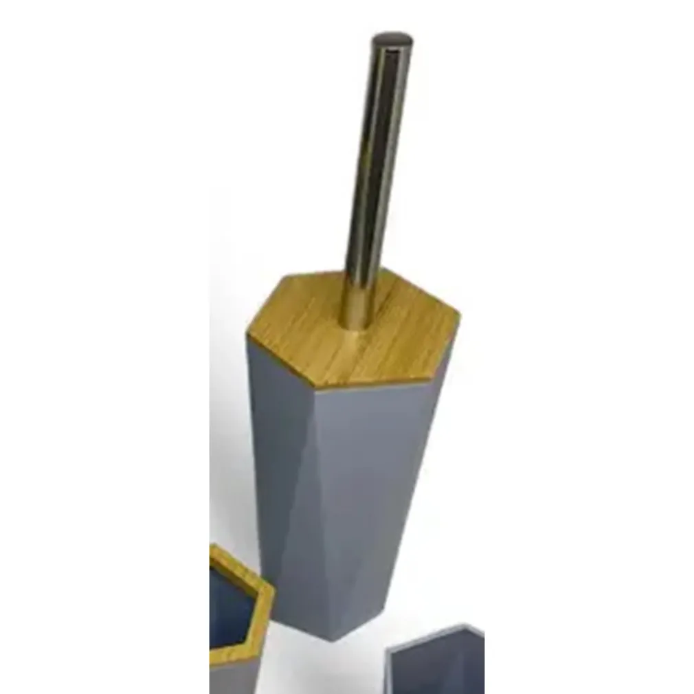 PORTA SCOPINO ESAGONALE GEOMETRICO GRIGIO LEGNO CON SCOPETTINO SPAZZOLONE WC BAGNO 10849 – Design moderno, funzionalità quotidiana: un accessorio bagno che fa la differenza