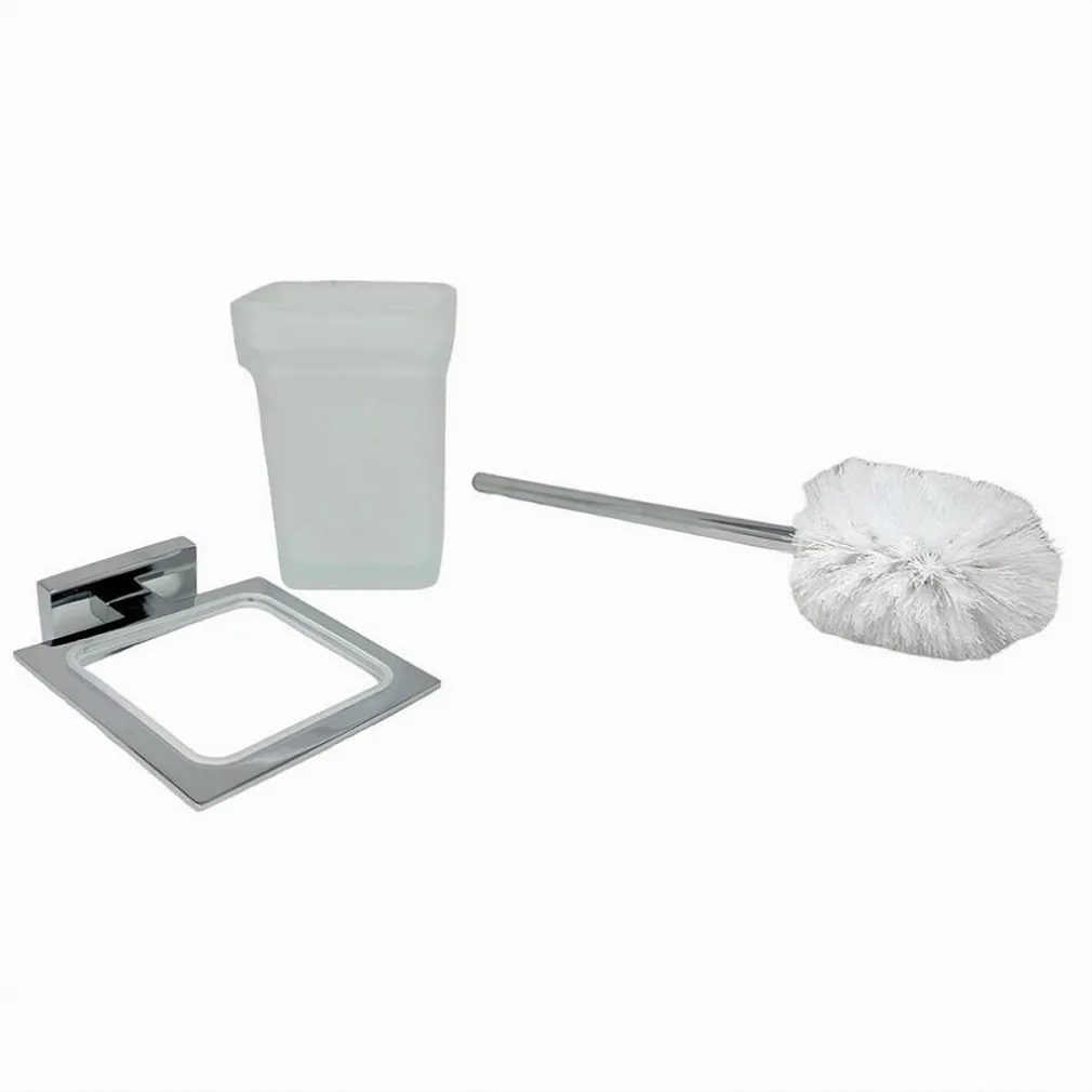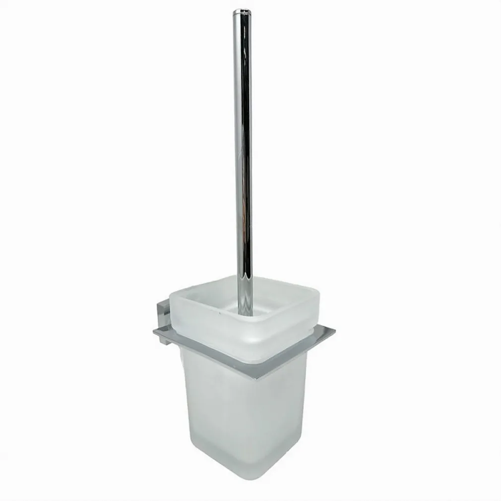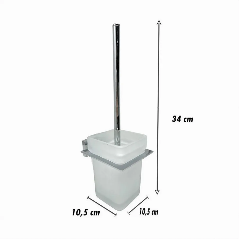 Porta Scopino WC Scopettino Completo Vetro Satinato Fissaggio Parete Bagno Cubo 87220