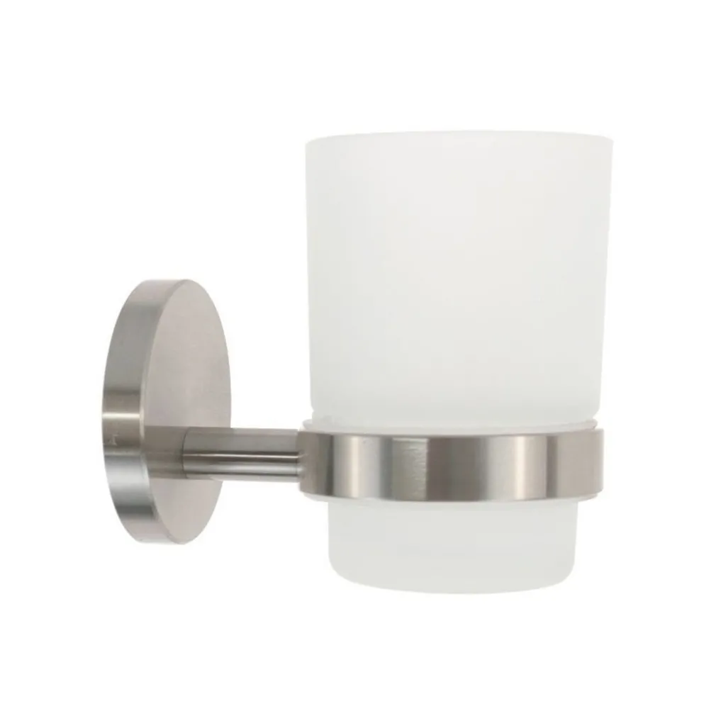 Materiali di Qualità Superiore: struttura in acciaio satinato antiruggine e bicchiere in vetro satinato, resistenti nel tempo e perfetti per ambienti umidi come il bagno.