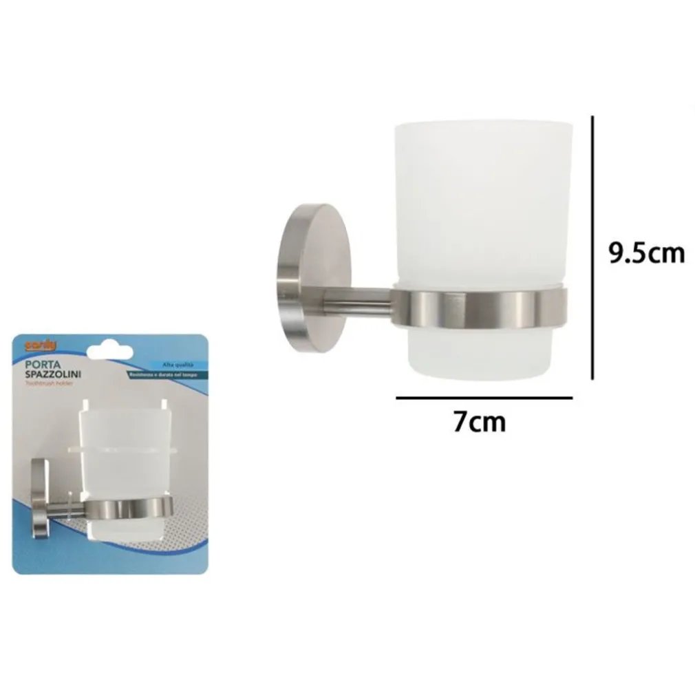 PORTA SPAZZOLINI DA DENTI IN ACCIAIO SATINATO CON BICCHIERE VETRO SATINATO BAGNO 87906