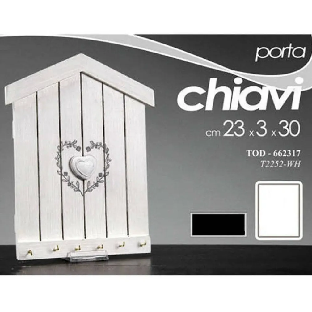 PORTACHIAVI DA PARETE FORMA CASETTA IN LEGNO BIANCO CON CUORE STILE SHABBY CHIC