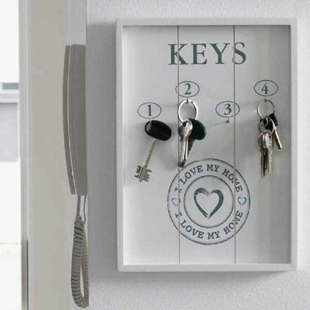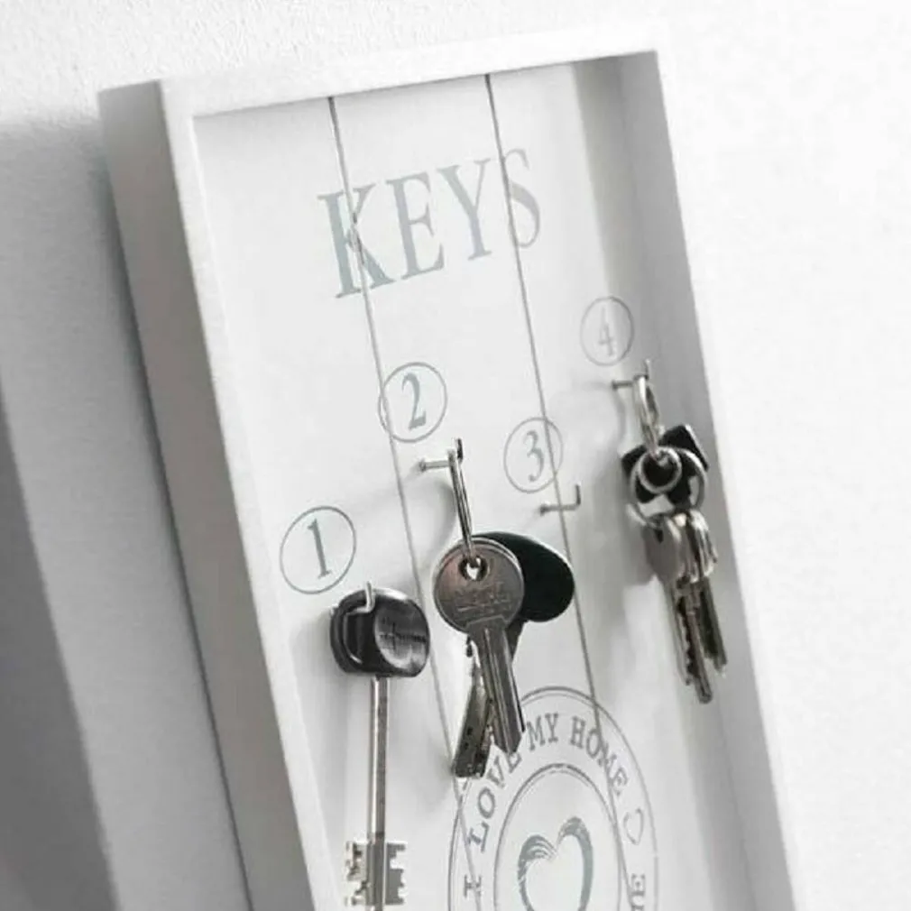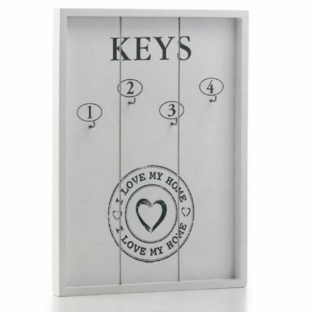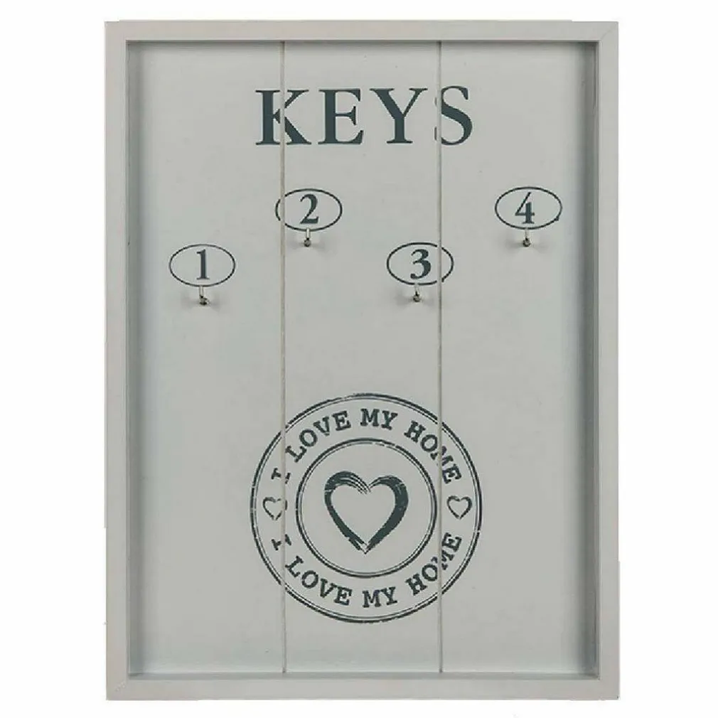 Nuovo ed utilissimo Portachiavi a muro in stile Vintage. Caratterizzato dal suo stile a finestra aperta con la rappresentazione di 4 Numeri ( Ganci ) per la separare le chiavi da quelle di maggior quotidianità e non. Con scritta, I LOVE MY HOME.