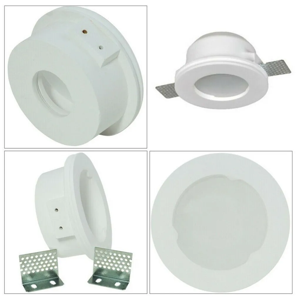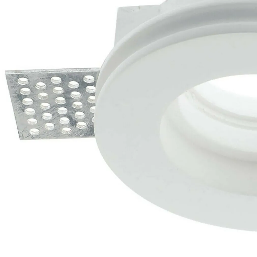 Bellissimo incasso per faretto in gesso verniciabile a scomparsa. Ideale per installazione in soffitti o pareti di cartongesso, grazie alla base grezza potrete scegliere se lasciarli bianchi rendendo il tutto un tutt’uno con il soffitto o verniciali del colore desiderato. La scelta di questi modelli fa si che la luce emessa dal faretto scelto crea dei giochi di luce internamente all’incasso, la luce riflette o sul colore o sul bianco dell’incasso stesso. Il fissaggio è semplice e veloce mediante alette in metallo forato che aderiscono perfettamente al cartongesso.