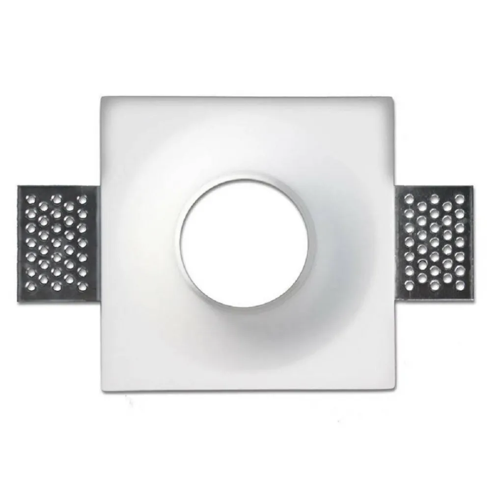 Incasso per faretto in gesso verniciabile a scomparsa. Ideale per installazione in soffitti o pareti di cartongesso, grazie alla base grezza potrete scegliere se lasciarli bianchi rendendo il tutto un tutt’uno con il soffitto o verniciali del colore desiderato. La scelta di questi modelli fa si che la luce emessa dal faretto scelto crea dei giochi di luce internamente all’incasso, la luce riflette o sul colore o sul bianco dell’incasso stesso. Il fissaggio è semplice e veloce mediante alette in metallo forato che aderiscono perfettamente al cartongesso.