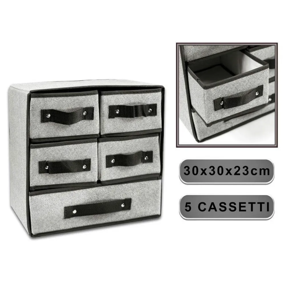 PORTA OGGETTI CASSETTIERA TESSUTO 5 CASSETTI 30X30X23CM SCATOLA PIEGHEVOLE SALVASPAZIO PORTAOGGETTI ORGANIZZER. COLORE CASUALE.