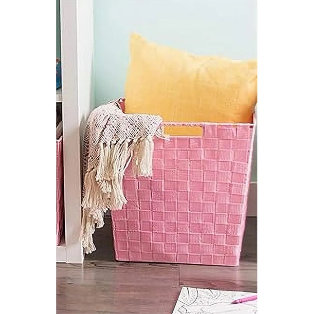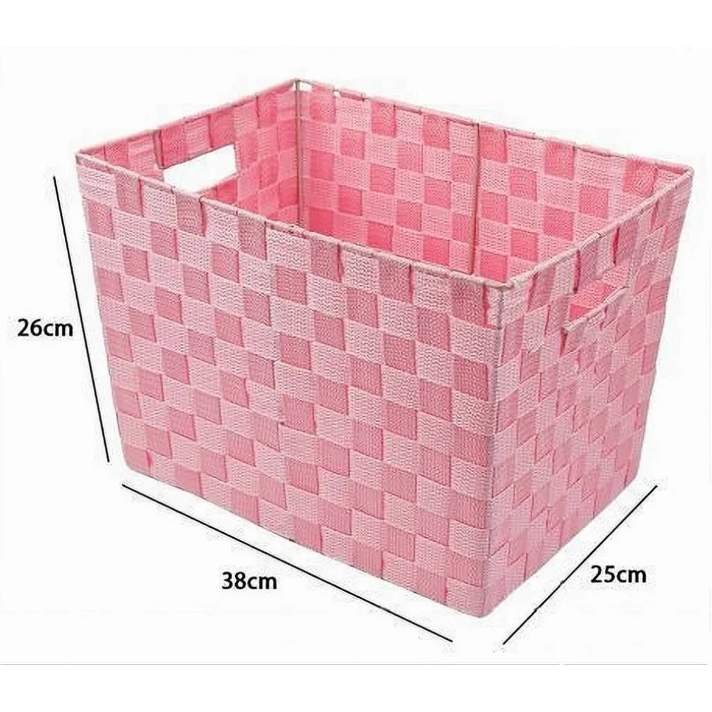 PORTAOGGETTI CESTO IN TESSUTO INTRECCIATO 38 X 26 X 25CM CON MANIGLIE ROSA 79041