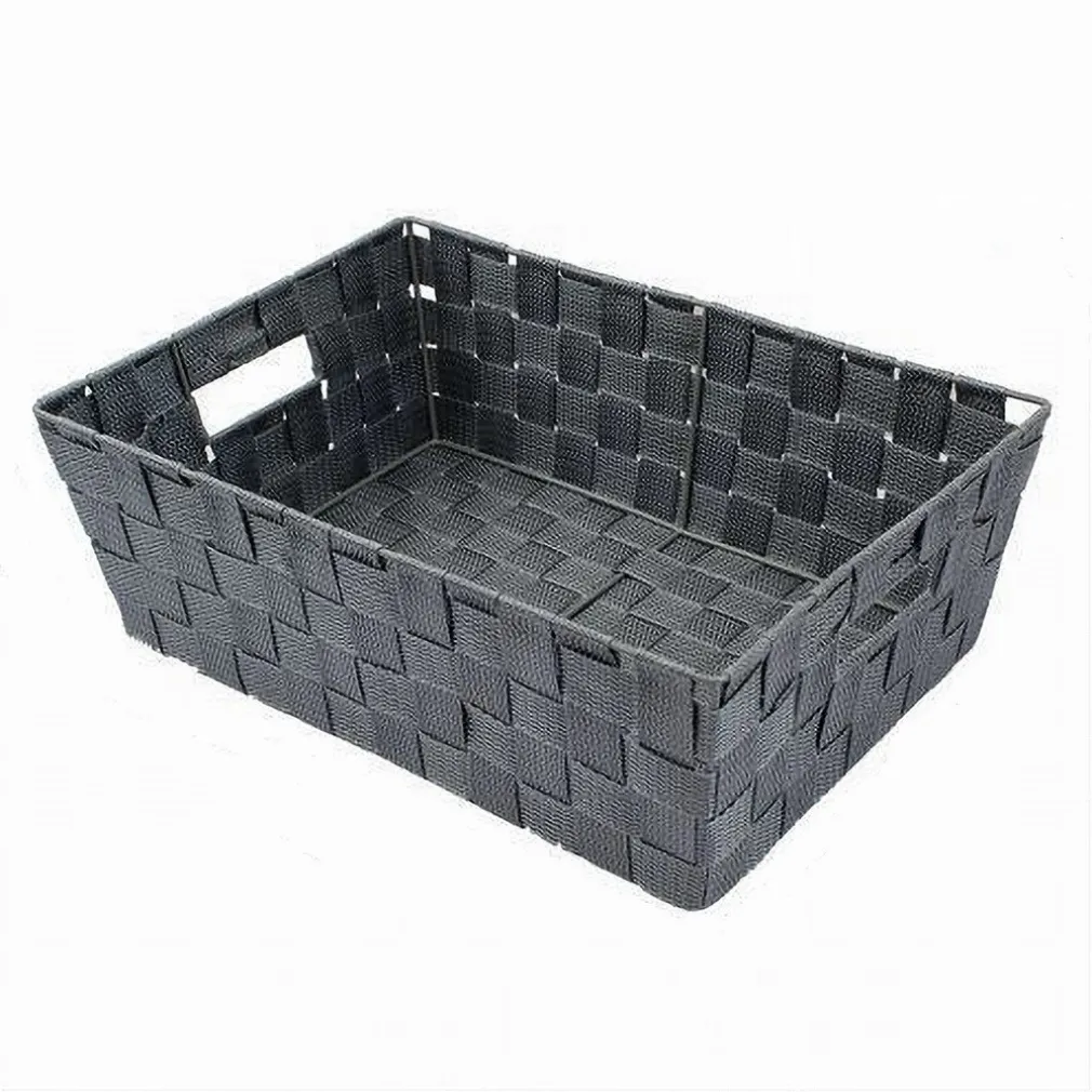 Portaoggetti Cesto in Tessuto Intrecciato 38x26x13cm Maniglie Grigio Scuro 79032